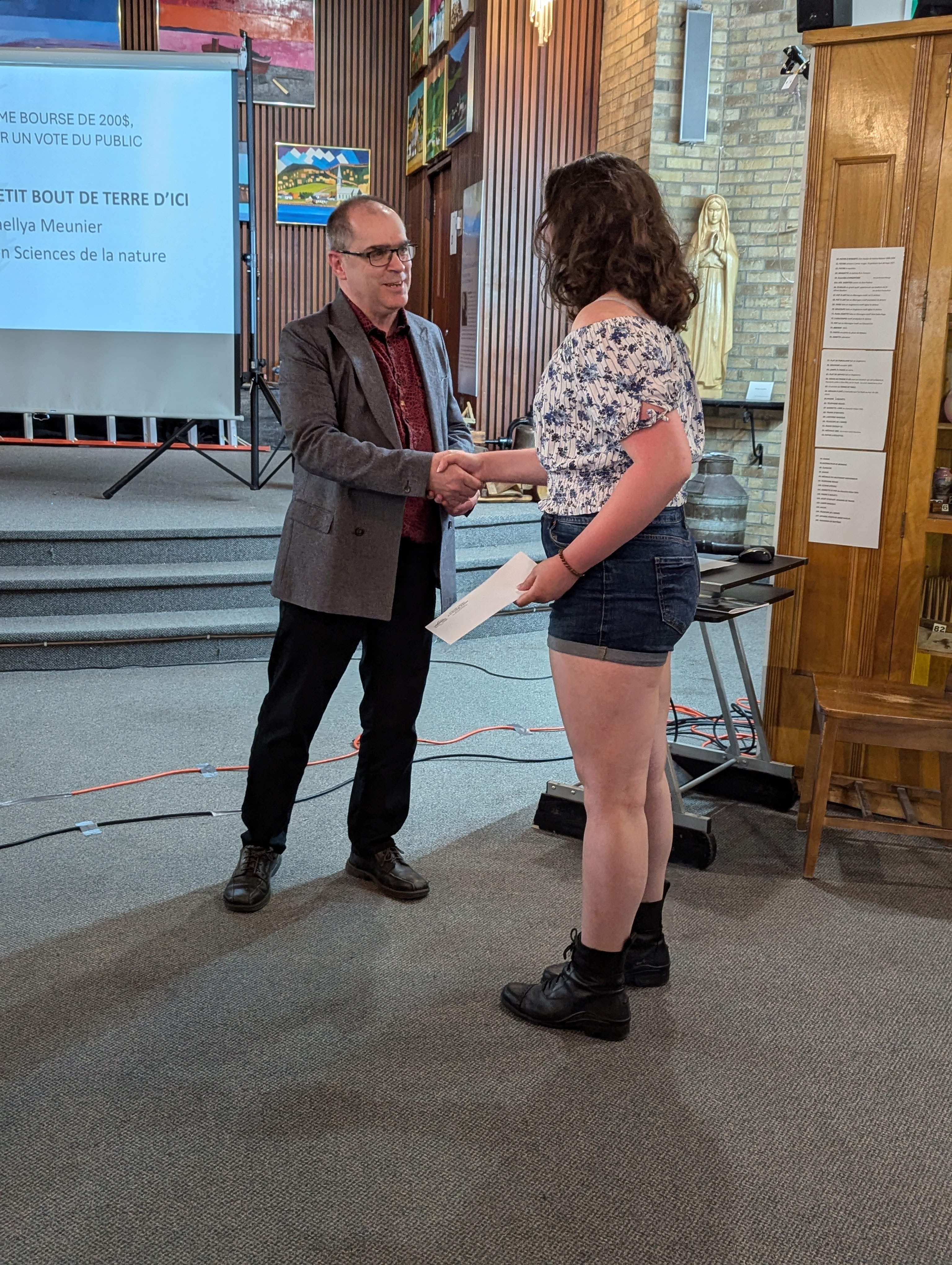 Une deuxième bourse de 200$, attribuée par un vote du public, est remise à Maellya Meunier, étudiante en Sciences de la nature, pour son projet « La vie sur un petit bout de terre d’ici »